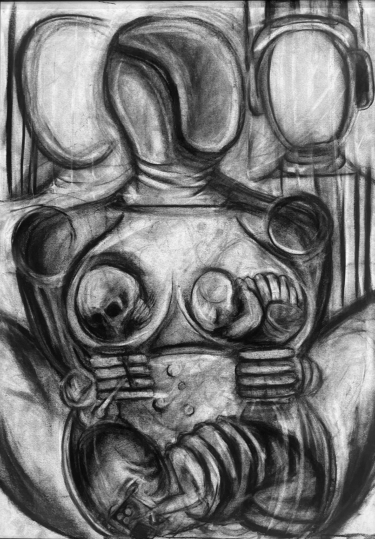 I was inspired by how technology deceives us in terms of protection, figuratively speaking about imposed “motherhood” and our own lack of protection.